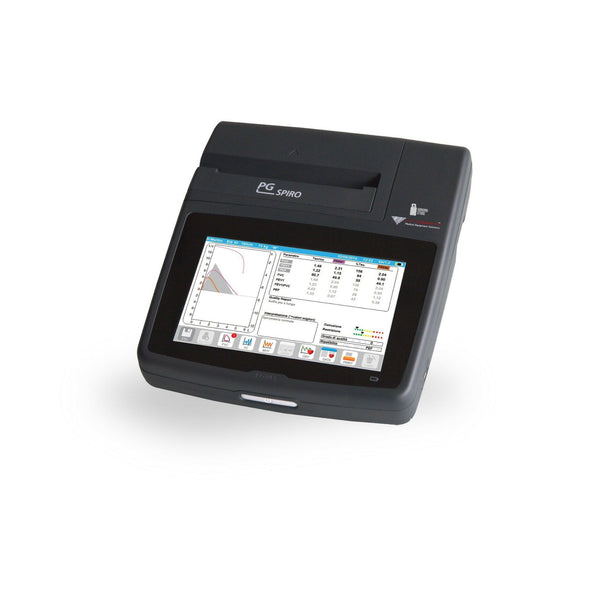 - Equipped with a 7-inch LCD touchscreen, the PG SPIRO spirometer offers a user-friendly interface with intuitive icons for seamless navigation.