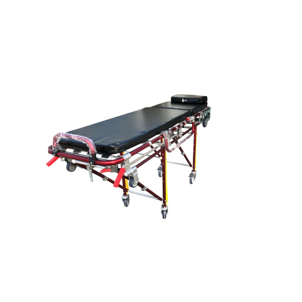 Automatic Loading Stretcher – Black is a high-strength, lightweight emergency stretcher designed for quick and efficient patient transport. Crafted from premium aluminum alloy, it ensures durability and stability while maintaining ease of use. The adjustable backrest and foam cushion enhance patient comfort, while the mechanical foldaway legs allow for seamless ambulance loading with a single operator. Securely lockable for stability during transport, this stretcher is ideal for ambulances, hospitals, and emergency services.