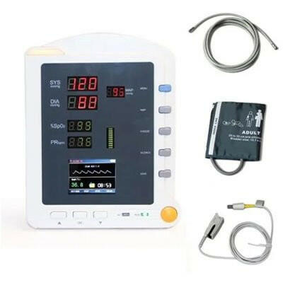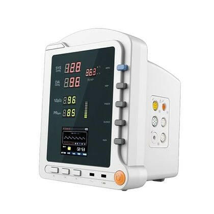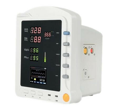 - High-brightness digital tube display, showing SYS, DIA, MAP, SpO₂, PR, and bar graphs.