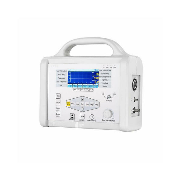 - A/C, A/C+SIGH, SIMV, SPONT, and MANUAL for customized respiratory therapy.