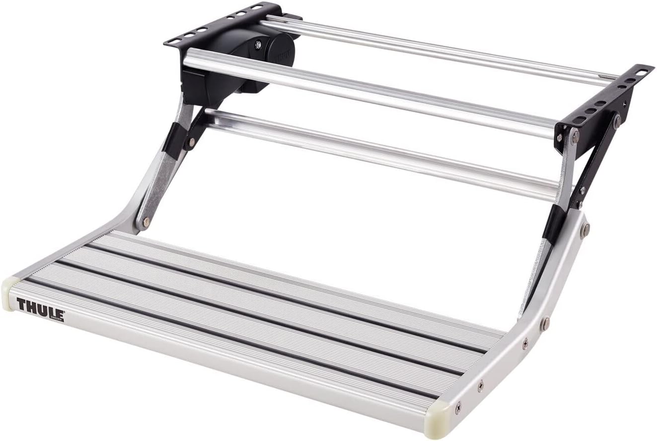 - This Thule folding step is designed to be mounted on the exterior of a vehicle, such as a van, RV, or trailer.