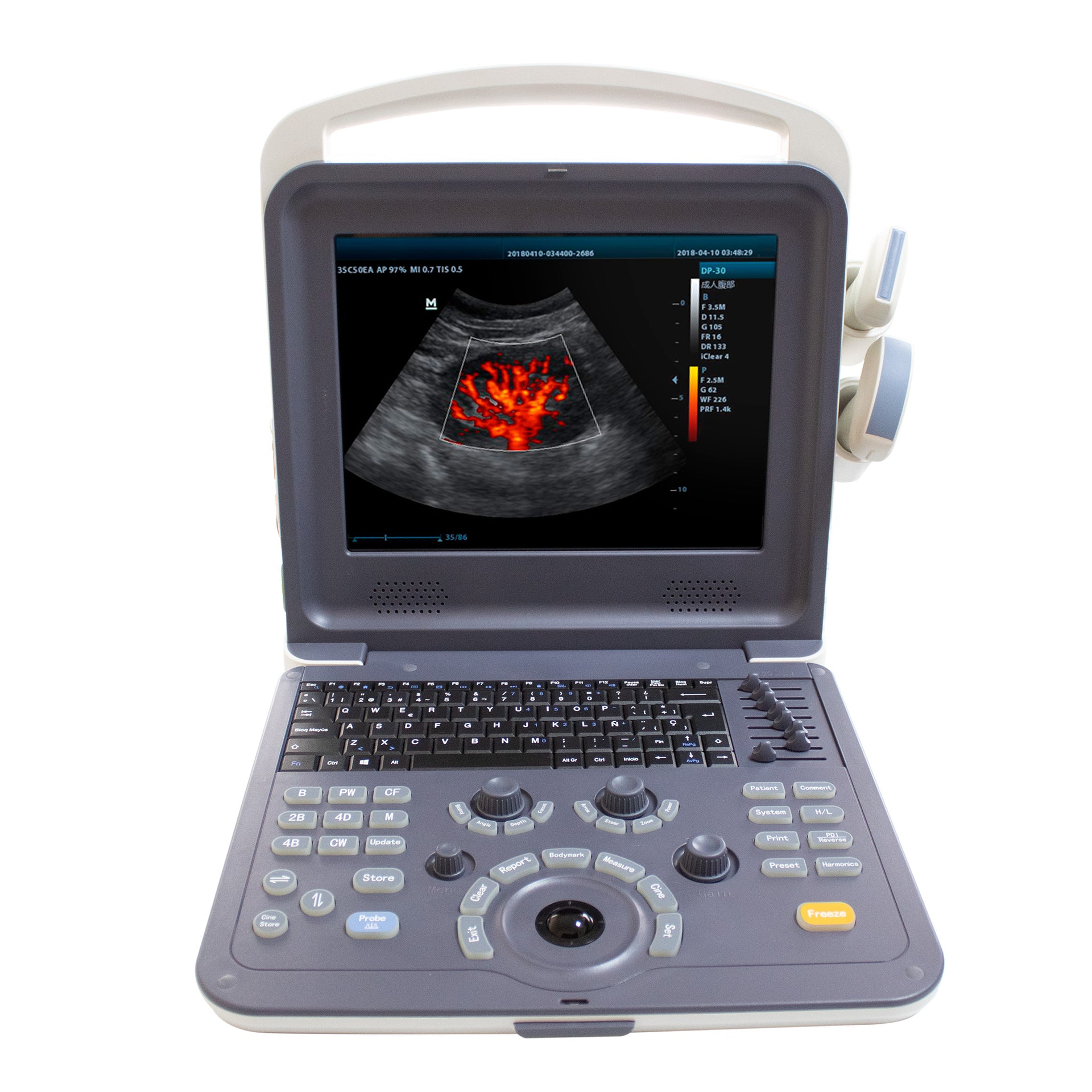Pseudo color processing transforms gray-level images into color images, allowing users to distinguish between different organ tissues. This ultrasound scanner offers more than 15 different color options for enhanced visualization.